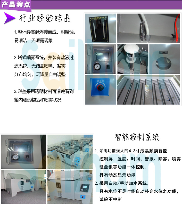 復合鹽霧試驗箱通過考核對材料及其防護層的鹽霧腐蝕的能力,以及相似防護層的工藝質量比較,同時可考核某些產品抗鹽霧腐蝕的能力;該產品適用于零部件、電子元件、金屬材料的防護層以及工業產品的鹽霧腐蝕試驗。